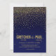 Show off your fashionista personality with these modern wedding invitations that feature glittery flecks of golden square confetti spilling onto the body of this navy blue invite. Matching products available. Comes in 6 colours: aubergine, navy, turquoise, black, pink and sand. Click the CUSTOMIZE IT button to personalise with your own text. Click the CUSTOMIZE IT button to personalise with your own text. For questions or custom requests, email: cheryl@cheryldanielsart.com. "Diamonds in the Sky" design by Cheryl Daniels © 2014.