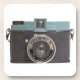 A high quality close up studio photograph of a Diana camera on a plain background.