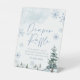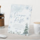 Blue winter wonderland baby shower sign with pine trees and snowflakes. Ideal winter wonderland theme for boy baby shower.