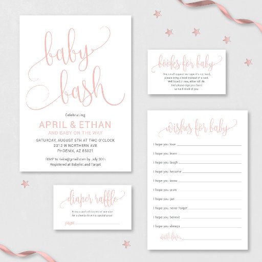 A cute and simple Diaper Raffle enclosure card. This enclosure card features delicate pink lettering and matches perfectly with the Baby Bash invitation in this collection. To add different wording, just select the "Personalise" button on the right.