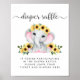 Cute diaper raffle drop off sign for your baby girl shower with "diaper raffle" written in a stylish soft grey script with swashes and a pastel pink watercolor of a baby elephant adorned in sunflowers.