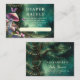 A whimsical watercolor illustration of a majestic tree in an enchanted forest, with lush foliage in emerald green, sparkling with fairy lights and magic dust, with a sprinkle of mushrooms and butterflies in pink and purple, decorates this spring summer fall winter baby shower diaper raffle enclosure card with an enchanted forest theme or mushroom theme or woodland theme. An elegant, modern design for a fairytale baby shower. Perfect for moms and parents who love the fairytale forest setting, the fairy forest or fairy garden theme, the mushroom theme, butterflies theme and emerald green, mauve, lavender and pink.