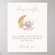 This cute diaper raffle sign features a watercolor illustration of a baby bear sitting on a pink and blue cloud with a gold moon and surrounded by stars, accompanied by elegant script typography. Customize them with your details and utilize the editing tools for further adjustments such as font size, placement, and color.