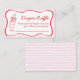 Invite guests to join the fun with this charming diaper raffle card designed for your She’s Ready to Pop baby shower collection. The card features a cute hand-drawn soda bottle tied with a bow, framed by playful wavy edges and a soft striped background. The pink, red, and white color palette adds a cheerful look, while the handwritten-style font keeps the design warm and personal. Perfect for including with invitations or displaying at your baby shower to encourage guests to bring a pack of diapers and enter the raffle.