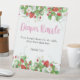 A berry sweet baby is on the way! This "Diaper Raffle" baby shower sign features cute strawberries, white flowers and greenery. It is complemented with a fun handwriting style typography and you can customise the text and graphic placement details to your specific needs.