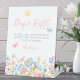 The bottom of the sign features a delicate watercolor wildflower garden with pink, blue, yellow, and green blooms, accented by scattered butterflies for a whimsical touch. Designed to pair perfectly with the A Little Wildflower Is On The Way theme, this sign adds a stylish and organised touch to your baby shower. The text, fonts, and colours can be customised to match your event.