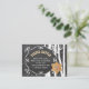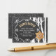 Rustic grey charcoal chalkboard winter wonderland diaper raffle insert card with swirls frame, an orange gingerbread star, birch trees and falling snow