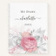 A chic white background with pink florals and silver foliage. Personalize and add your name, title and year. The name is written with a modern hand lettered style script with swashes.
