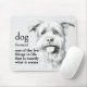A dictionary definition for DOG in black text on a whitewashed wood background with a cute terrier sketch portrait