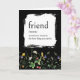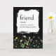 Bold white dictionary definition for a FRIEND on black with a wildflower border for a friend's birthday.