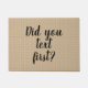 Just like a little advance notice before someone shows up? This doormat is for you! Not many call anymore, but they can text. Burlap background with the message 'Did you text first?' You can also change the font or background if you'd like.