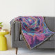 A quality printed throw has its advantages. This is a much finer weave throw than its loopier cousins, and though lighter, it is worth the investment for custom room accessorizing. The back is much prettier than the typical brown, and the fringe on the long sides very vivid, the selvage nicely done. Before photographing, I washed the throw in cold water, delicate, with a thicker woven throw the same size. On tumble dry low, this throw was dry in half the time as the other. This is a very practical quality if you use throws for furniture covers or to wrap up in frequently. The sleekness of the fabric makes it a great layer for accenting or protecting without the feeling of sitting on too much stuff. Perfect for napping or when you feel a light chill coming on. The color printing is beautiful and on this fabric, matched the design and color of my Photoshop image. This is an advantage for blending room fabrics and colors. The fringe on the short sides prints the colors from the design image and therefore varies from the side fringe. I streaked a white fractal line through the plaid pattern to give the illusion of weaving. This printed as crisp as an illusory thread, and put some white in the short side fringe, showing another advantage of print vs loomed- for artistic purposes, line lines, detail, and color integrity can be planned and preserved. My loomed throws have color limitations and more of a needlepoint texture. Print throws reproduce an exact image. The throw felt a little stiff straight out of the package, but this went away in the first delicate wash. Of course I searched the wash water for ink or bleeding and there was none.