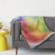 A quality printed throw has its advantages. This is a much finer weave throw than its loopier cousins, and though lighter, it is worth the investment for custom room accessorizing. The back is much prettier than the typical brown, and the fringe on the long sides very vivid, the selvage nicely done. Before photographing, I washed the throw in cold water, delicate, with a thicker woven throw the same size. On tumble dry low, this throw was dry in half the time as the other. This is a very practical quality if you use throws for furniture covers or to wrap up in frequently. The sleekness of the fabric makes it a great layer for accenting or protecting without the feeling of sitting on too much stuff. Perfect for napping or when you feel a light chill coming on. The color printing is beautiful and on this fabric, matched the design and color of my Photoshop image. This is an advantage for blending room fabrics and colors. The fringe on the short sides prints the colors from the design image and therefore varies from the side fringe. I streaked a white fractal line through the plaid pattern to give the illusion of weaving. This printed as crisp as an illusory thread, and put some white in the short side fringe, showing another advantage of print vs loomed- for artistic purposes, line lines, detail, and color integrity can be planned and preserved. My loomed throws have color limitations and more of a needlepoint texture. Print throws reproduce an exact image. The throw felt a little stiff straight out of the package, but this went away in the first delicate wash. Of course I searched the wash water for ink or bleeding and there was none.