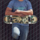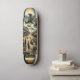 The "Dieselpunk Airfield Deck" is a vivid skateboard deck graphic that brings to life a bustling airfield in the Dieselpunk era. This design features vintage aircraft and futuristic airships, capturing the spirit of early aviation infused with Dieselpunk elements. Pilots and mechanics, dressed in period-appropriate attire, work diligently on the aircraft, adding a sense of authenticity and activity to the scene. The airfield is fully equipped with hangars, fuel stations, and radar towers, all styled in the metallic structures and retro-futuristic designs characteristic of Dieselpunk. The background is a busy sky filled with flying aircraft and airships, emphasizing the excitement of aviation. The colour palette of earthy browns, sky blues, and steel greys highlights the blend of traditional aviation with the imaginative world of Dieselpunk, making this deck a perfect tribute to the era's innovative spirit and technological advances.