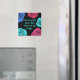A square fridge magnet in black with colour pop roses on it in blues and pinks. The writing says "I love myself more than what's in the fridge". You can change the background and text colour if desired and even the wording by clicking the "customise" button.