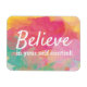 Encouragement, affirmation quote, "Believe in Your Self Control!" This inspirational typography design features a reminder to see and live by daily. Design has a colourful abstract pink, yellow and teal watercolor background. Font is bright white. Colour of font can be easily customised in the Zazzle design tool section. Great idea for the refrigerator or anywhere you need a little reminder to eat well!