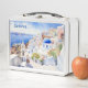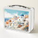 Nice lunchbox with 2 different picture Oia, Santorini, Greece. Sunset in the most beautiful location in Greece.