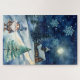 Difficult Blue Winter Christmas Village & Gnome Jigsaw Puzzle