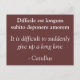 A postcard with a latin phrase and an english translation underneath. "It is difficult to suddenly give up a long love", by Catullus. Basically it means that breaking up sucks.