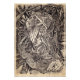 Diffracted (cavern dweller), by Brian Benson. This is an A3 india ink drawing which I made in about 1995, done with a dipping nib pen. The paper of the original drawing has yellowed somewhat; the darker patch down the left hand side is from a tape backing strip that I added as support. Not a great idea.