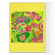 Diffuse Garden Art Card - Spring 2016 - Print in centre has 2 heart details added / Print on back is original before it was diffused. ( Abstract / Digital ) Green / Purple / Yellow / Multi