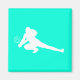 Magnet with a silhouette of a volleyball player doing a dig. Available in different colours and on other products at my store.