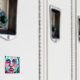 Art magnet. Urban street art women's face AI generated art. Close up of face. Teal, white, pink and black colours.