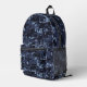 A custom all over print backpack with a digital camouflage pattern in shades of light blue to dark navy blue. Great for anyone that likes military style designs! Adjust the pattern size any way you prefer on each panel to make this cool camo backpack perfect for you or as a gift. Great for school, travel, and more!