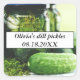 Dill pickles, mason jar, homemade cucumbers stickers. You can personalise it with your name and date.