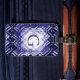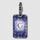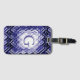 Reminiscent, of a Moroccan-style carpet, this abstract, monogram design, is displayed in-glowing, colours of, navy-blue, lavender, black, and white.