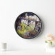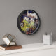 The size of the clock is dramatic and the abstract alcohol ink design is soothing and intricate at the same time. I chose the black frame that adds pop to the blue and gold design. The gold printing would be better in a slightly darker or larger font. I love it and I’m looking for just the right place in ny new apartment. I would recommend this clock for a personal gift or a present. I feel that the quality is excellent for the money! I’m a bit of a clock nut so I’m pretty particular about my purchases. The clock is larger in diameter than many if the clocks I have, so it stands out very well. I think a slightly darker printing color and a moderately larger size would best suit a professional decor or add more impact in a work place item.