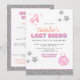 This bachelorette invitation and itinerary template features disco cowgirl inspired silver glitter, retro fonts, and cow hide and an editable backside itinerary. Easily edit most wording to meet the needs of your event. This invitation is perfect for a bachelorette weekend or bridal shower outing.