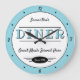 Any name diner with retro robin egg blue graphic on a white background with a blue border. Just use the personalize option to change the text. Slogan script with any date. Just choose the hand color and size.