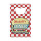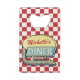 This cool, retro 50s diner sign bottle opener can be easily personalized with your own name. The background is a slightly-distressed red-and-white checker pattern, and the 1950s-style sign on top says DINER and OPEN in faux neon. The design has an arrow graphic and room for your first or last name at the top. The color scheme is red, white, yellow, and teal blue with some gray and black. DESIGN TIP: Add your name to the easy template field. Or "customize / personalize further" to resize your text or alter the font and color. This one-of-a-kind design with all original artwork will look fab in your diner, kitchen, or at your 50s-themed party. Find the light pink / blue version here: https://www.zazzle.com/create_your_own_custom_retro_50s_diner_sign_credit_card_bottle_opener-256570789033539711