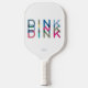 This DINK personalised custom name pickleball paddle with turn heads on the court. A modern design with the word "DINK" in vibrant shades of pink, blue, yellow and green. Personalise the paddle with the initials or name of your choice. Makes a wonderful gift for the pickleball player in your life or treat yourself. Part of a collection from Parcel Studios.
