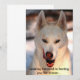 Photo of white Siberian Husky licking chops adorns this dinner invitation and adds a touch of humour, in this play on your guest being dinner.