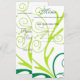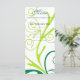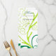 Dinner menu card for weddings, birthdays, anniversary, graduation, meetings, celebrations, elegant green and yellow swirl flora pattern.