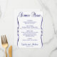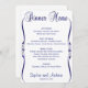 This elegant dinner menu in blue and white with a slight touch of glitter look can be customised. You can change the font and colours of most of the text and even the background colour. Designed by Amelia Carrie and sold exclusively through GlitterInvitations.com Note: This is a graphic print reproduction or artwork and contains no messy glitter.