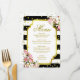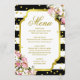 This modern and sophisticated Black and White Stripes, Roses and Gold Confetti dinner menu can be customised. You can change the font and colours of most of the text. Designed by Amelia Carrie and sold exclusively through zazzle.com/GlitterInvitations Note: This is a graphic print reproduction of artwork and contains no messy glitter.