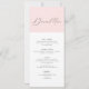 Modern minimalistic pink and white background. Black and elegant script typography design on the text Dinner menu.