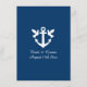 Dinner wedding menu with nautical boat anchor logo. Navy blue and teal colour palette. Elegant template for classy marriage. Part of budget friendly collection set including stationery and decorations. Ship anchor and doves design.