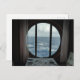 Set the mood for your next adventure with this elegant postcard featuring a table for two aboard a cruise ship, perfectly framed by a grand round porthole gazing out to the endless ocean. The gentle waves beyond the glass hint at serenity, romance, and wanderlust.