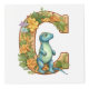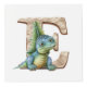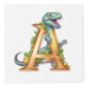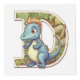 This image depicts a playful educational toy block featuring letters of the alphabet with each letter paired with a dinosaur whose name starts with that letter, illustrated in a whimsical, child-friendly style.