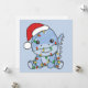 The Dino at Christmas with fairy lights. Funny animals with gifts and snow for the holidays. A sweet Christmas greeting. Dinos are cute animals and perfect for Christmas.