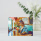 Dino Eating Ice Cream at Cafe Holiday Postcard