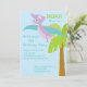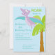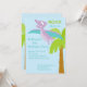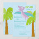 Start your celebration off right with this adorable kids birthday invite. It is set on a light blue sky background with a palm tree off to one side with a purple pterodactyl flying above. Check out our other designs and colours in this line.© JW Illustrations