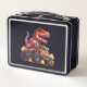 Introducing our lively lunch box design featuring a young, cheerful dinosaur riding a monster truck. This playful and fun design is perfect for students heading back to school, bringing smiles and excitement to their lunch breaks.