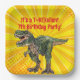 Dino T-Rex Dinosaur Funny Birthday Boy Yellow Paper Plate