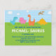 This simple postcard with cute dinos invites folks to stomp over to your little one's party.
