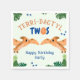 Celebrate your kid's second year of life with this cool pterodactyl birthday party napkins. These funny dinosaur napkins have green blue and orange colour scheme and safari theme. Perfect for your little one's wild ride through the terrible twos. Personalise it with your event details. Unisex design for a boy or girl.